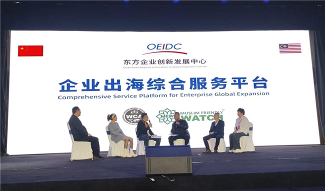 图:“助力企业出海”对话会上东方企业创新发展中心副秘书长王国红与马来西亚马中企业发展基金会执行会长、世界消费人协会顾问驻中国首席代表李立德为企业代表解读了中国与马来西亚相关服务政策以及马来西亚相关清真产业市场发展前景,并提出对企业出海企业的相关建议。